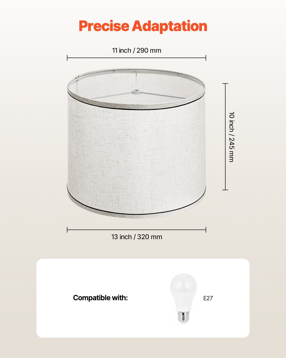 • Material: Fabric + metal frame • Color: Beige • Shape: Drum • Mount Type: Spider fitter • Use: Indoor lighting